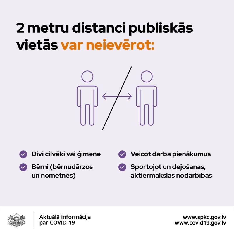 Riga Municipality calls on all residents to continue strictly stick to the health safety measures - careful hand hygiene, physical distance and thoughtful actions, both in public places and in everyday life, in order to prevent a recurrence of the coronavirus Covid-19. It is very important for everyone to assess the risks and be able to take responsibility for their own health and the health of others. The basic principles are the same - wherever possible, follow a distance of 2 meters, wash your hands, stay home if you feel sick and follow the information signs, such as in public places, as well as follow the instructions of the particular service provider or event organizer.