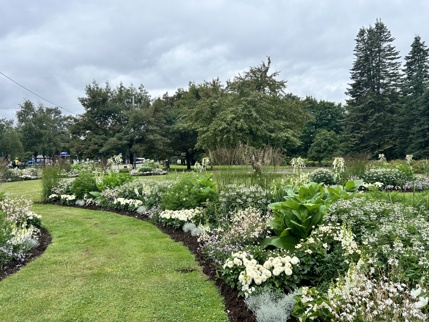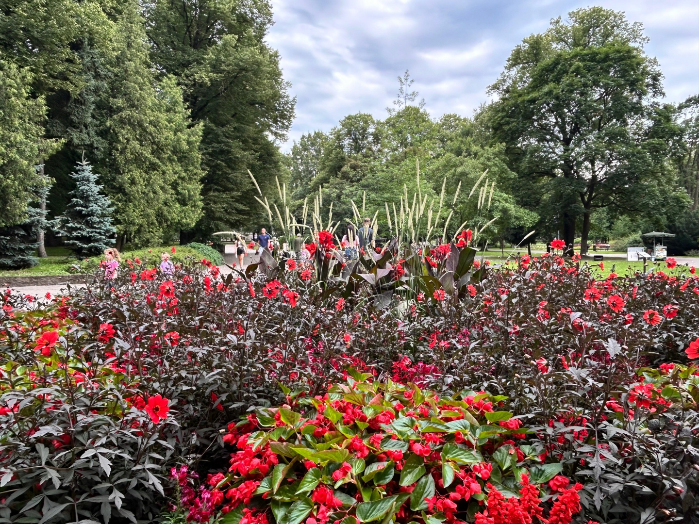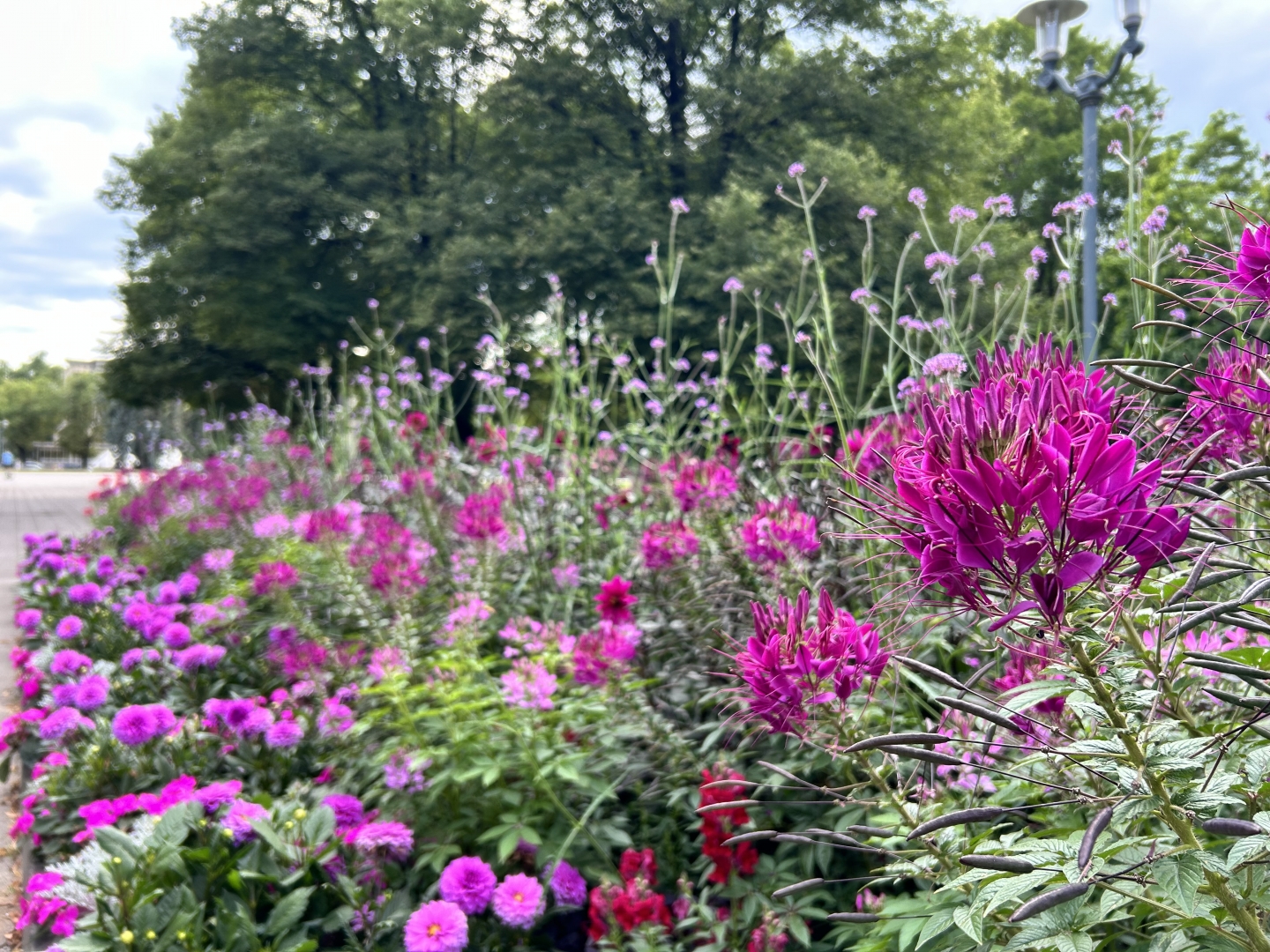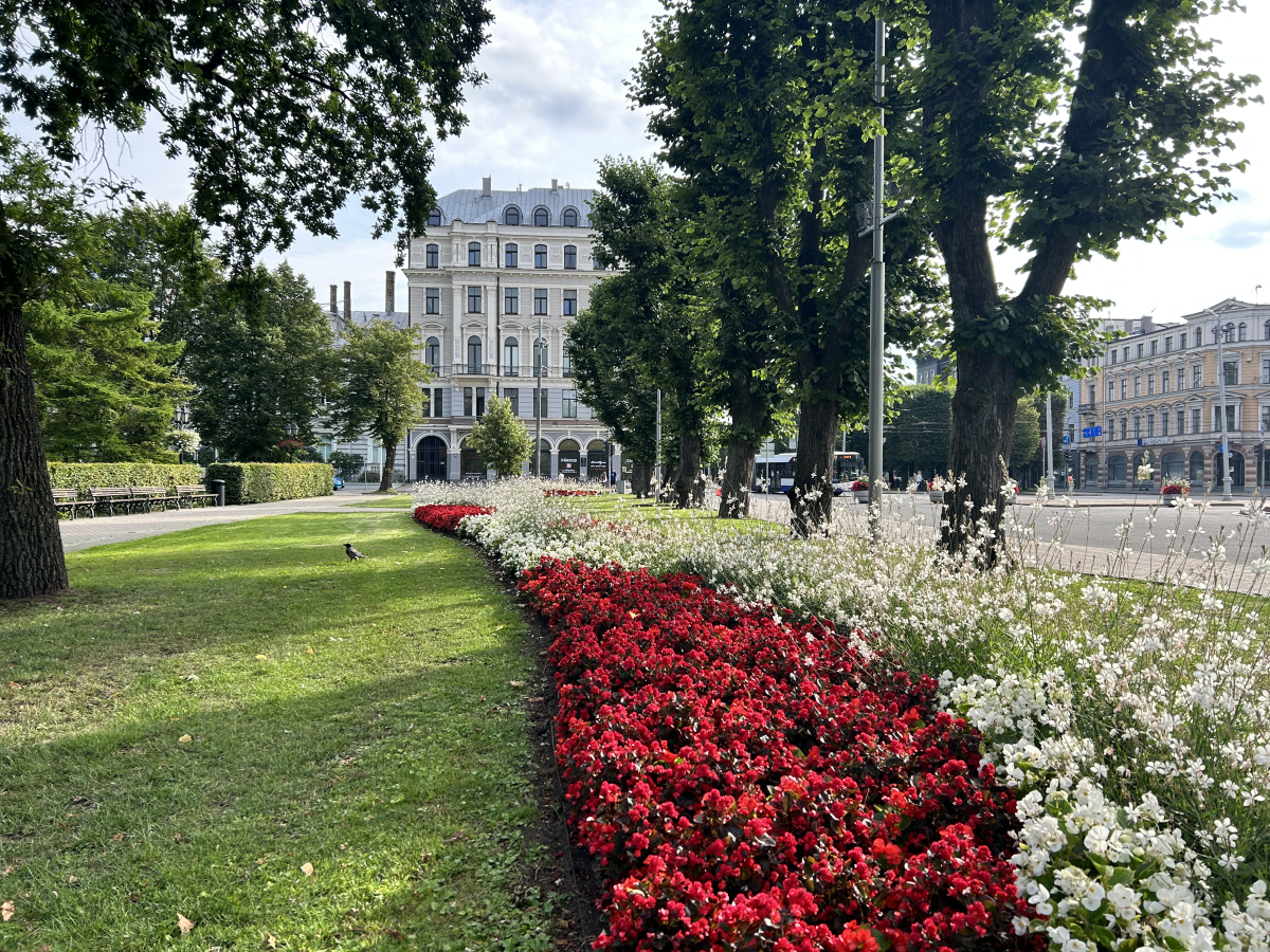Puķu dobe Uzvaras parkā, iepretim Hermaņa ielai