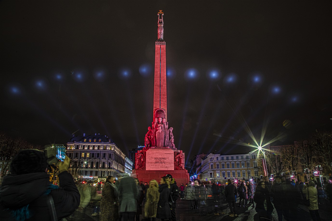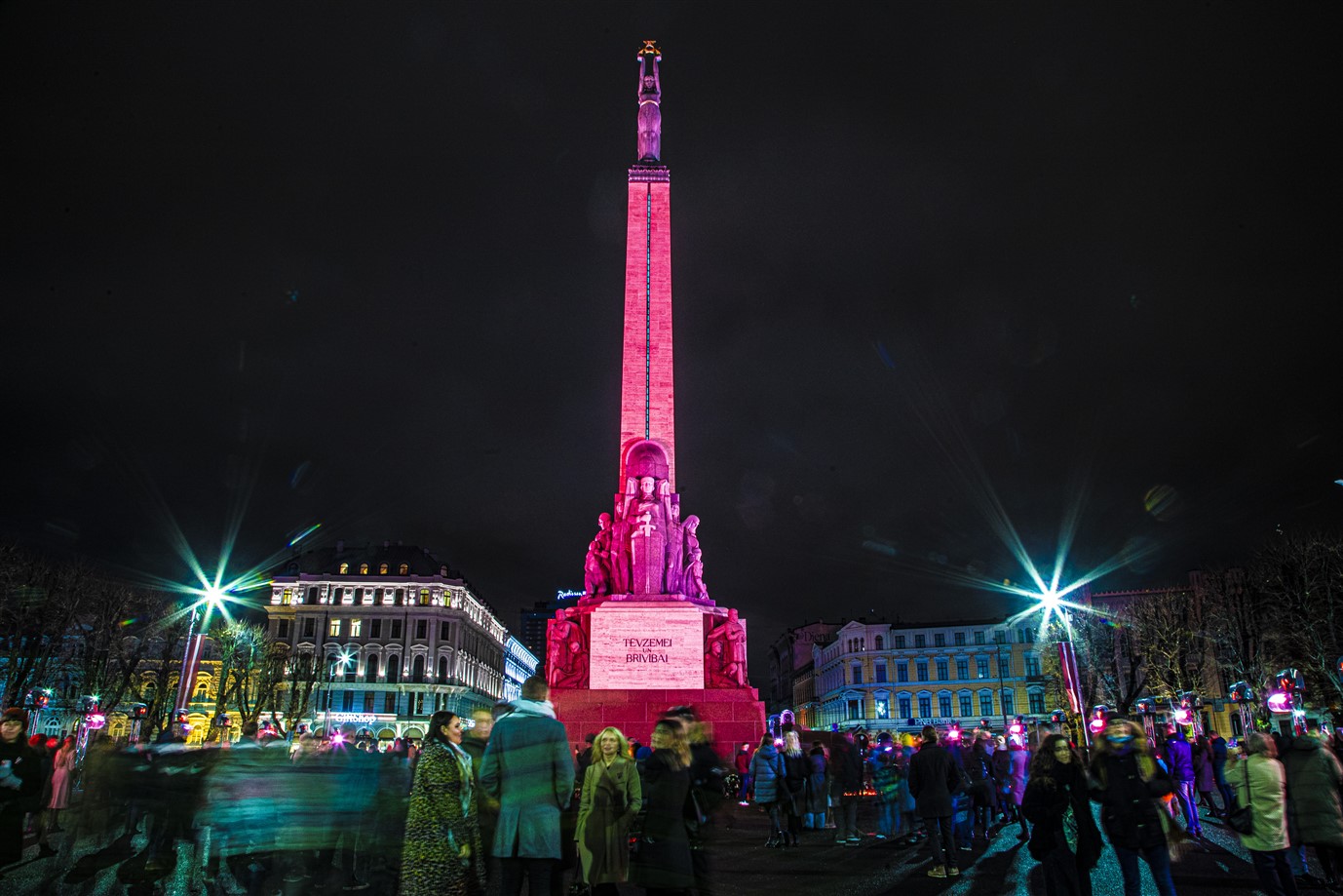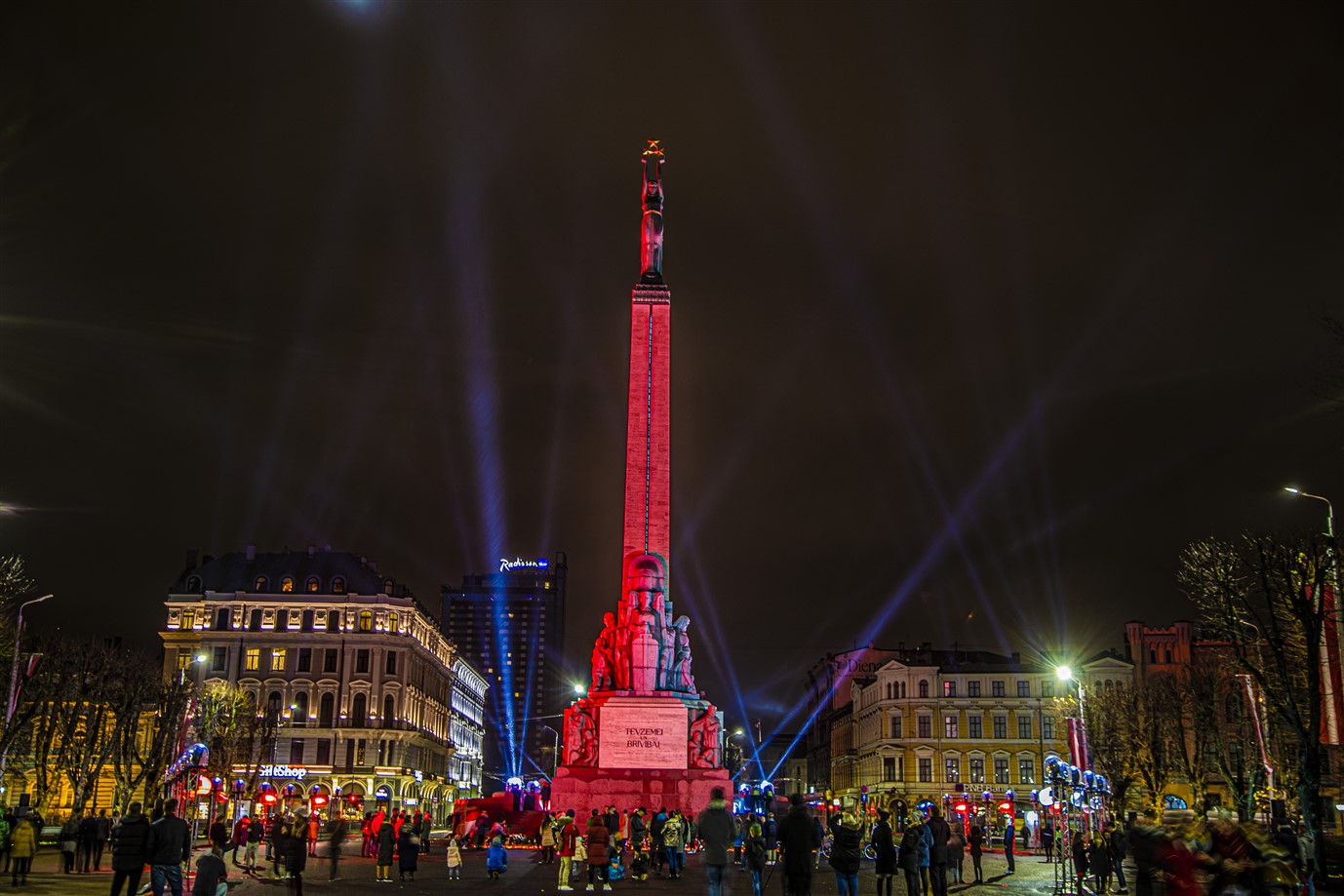 Svētku sajūtu pilsētā radīja Brīvības pieminekļa izgaismojums “Mana dziesma”.