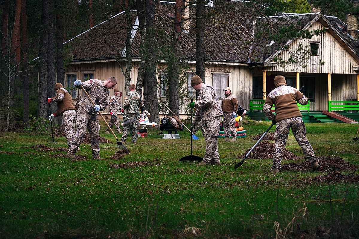 Trešdien, 29. aprīlī, NBS Nodrošinājuma pavēlniecības karavīri sakārtoja Rīgas pašvaldības Bērnu un jauniešu centra vasaras mītnes teritoriju Baltezerā.