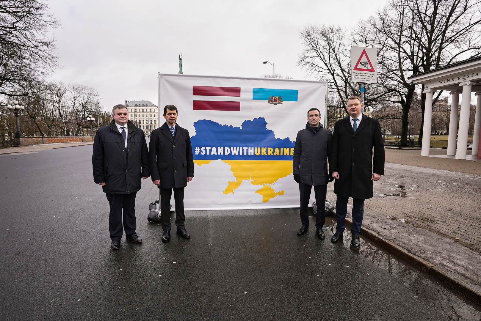 Pirmdien pie Rīgas domes ēkas pacēla Ukrainas karogu un rātsnamu izgaismoja šīs valsts nacionālajās krāsās, savukārt otrdien Doma baznīcā notika dievkalpojums “Aizlūgums par Ukrainu”. Trešdien Ukraiņu vidusskolā tika atklāta akcija “Bērni zīmē nākotnes Ukrainu”.
