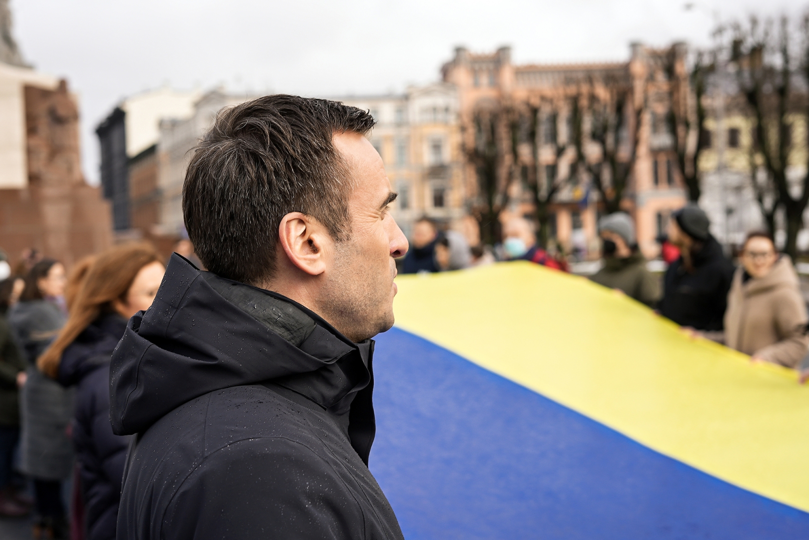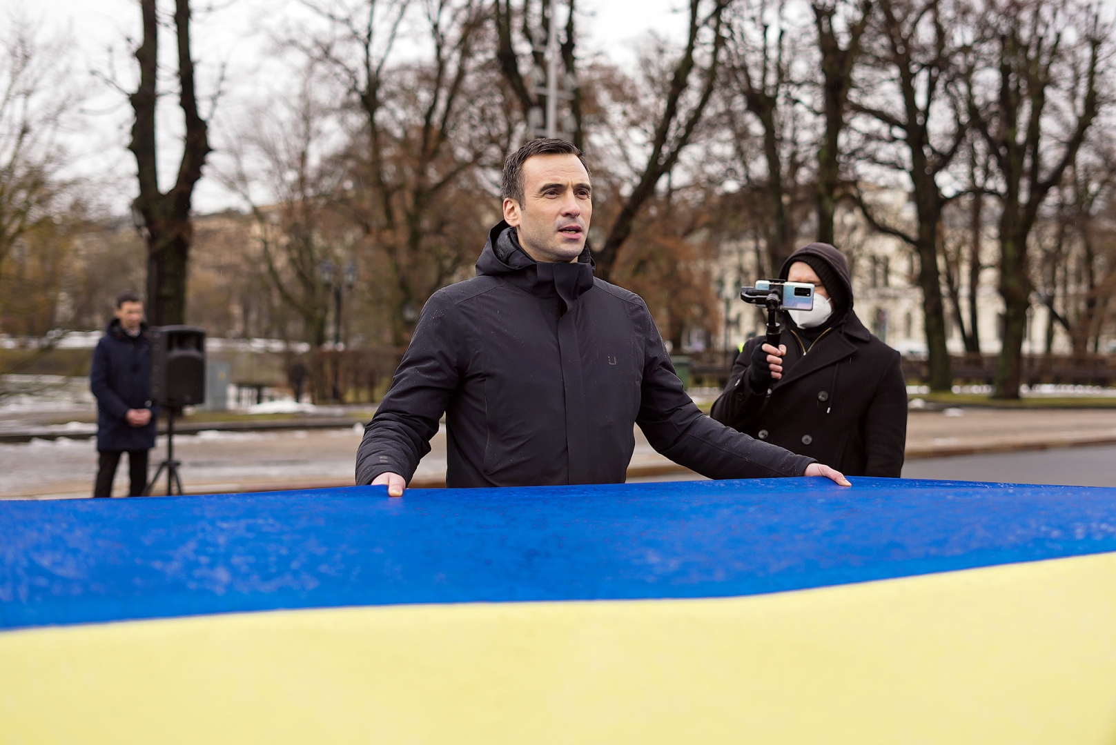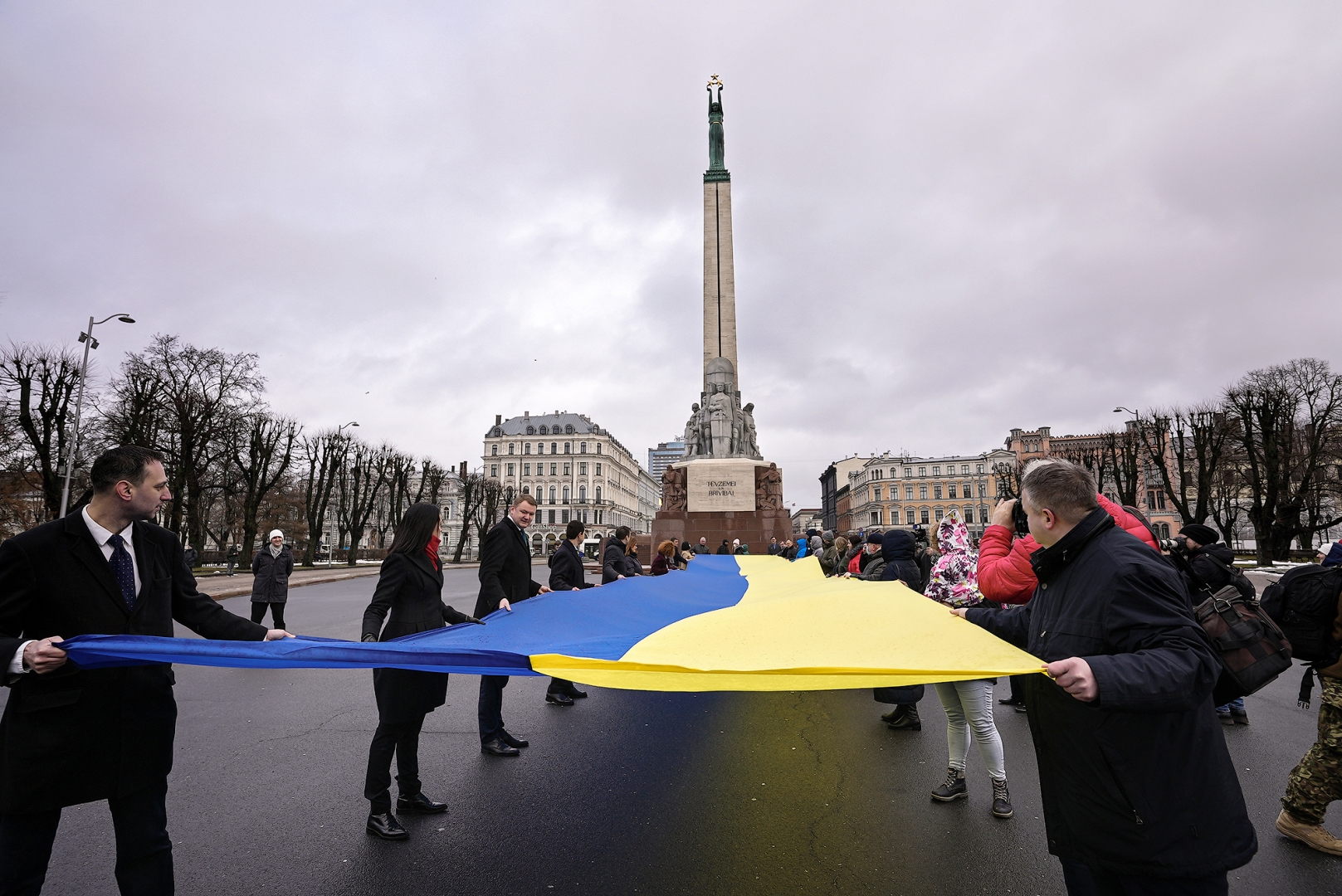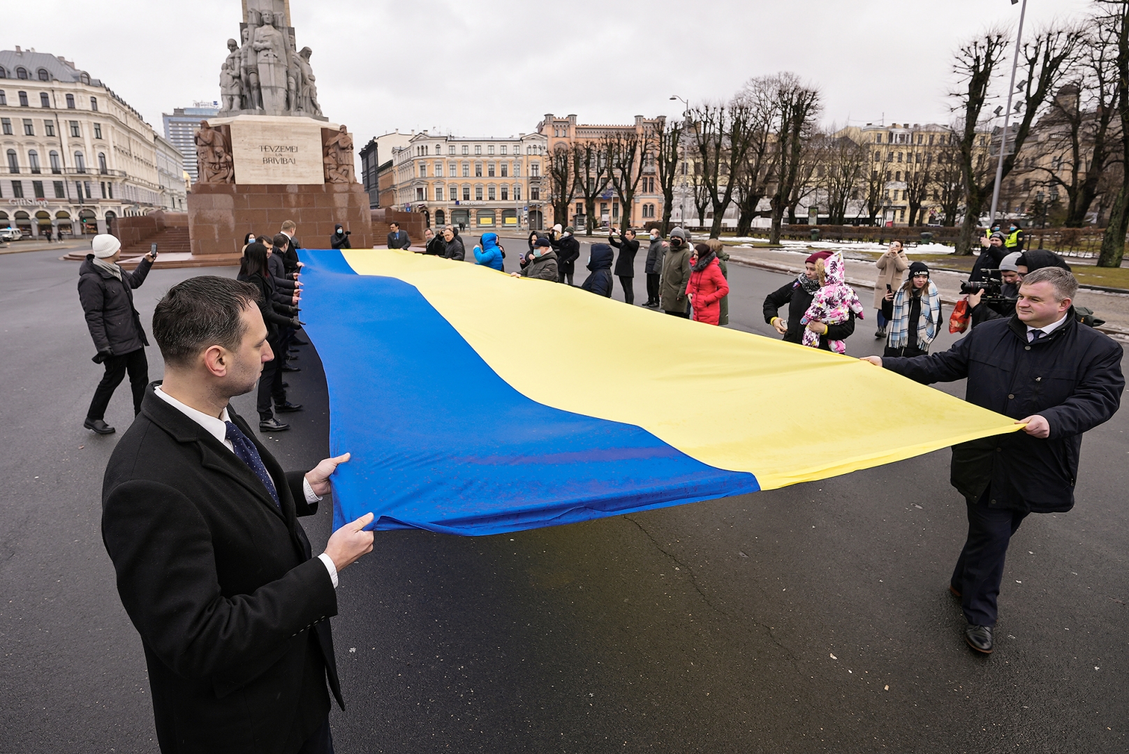 Turpinoties “Ukrainas nedēļai” galvaspilsētā, pie Brīvības pieminekļa ceturtdien, 17. februārī, notika pasākums “Karogs par mieru Ukrainā”, kura laikā svinīgi izklāja 30 metrus garu Ukrainas karogu.