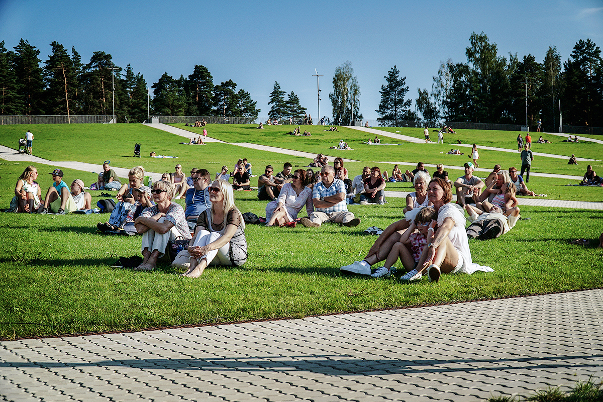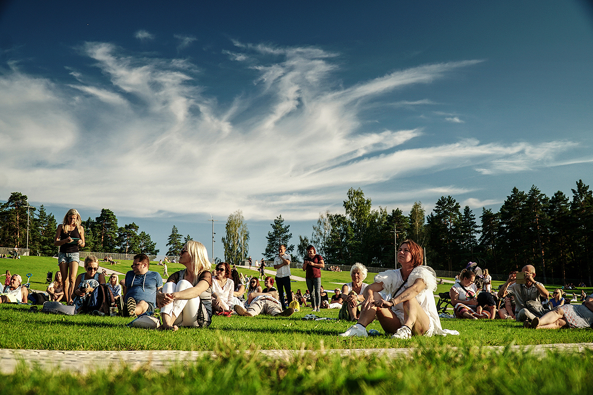 Rīdzinieki un pilsētas viesi Lielā piknika laikā novērtē jauno Mežaparka estrādi