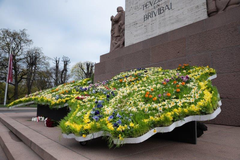 Šogad, kad atzīmējam Latvijas Republikas neatkarības atjaunošanas 30. gadadienu, Rīgu rotā kompozīcija „Ziedu Latvija” un vides mākslas objektā „Goda vārti” ir skatāms stāsts par Latvijas Valsts karogu un himnu.