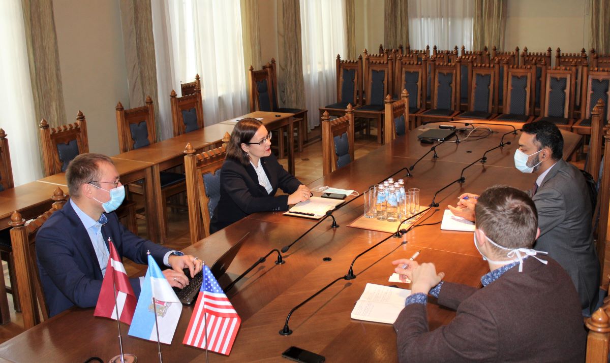 Rīgas domes priekšsēdētāja vietniece un Drošības, kārtības un korupcijas novēršanas komitejas priekšsēdētāja Linda Ozola tiekas ar ASV vēstniecības Latvijā pārstāvjiem Ametu Kabravalu un Artjomu Uršuļski