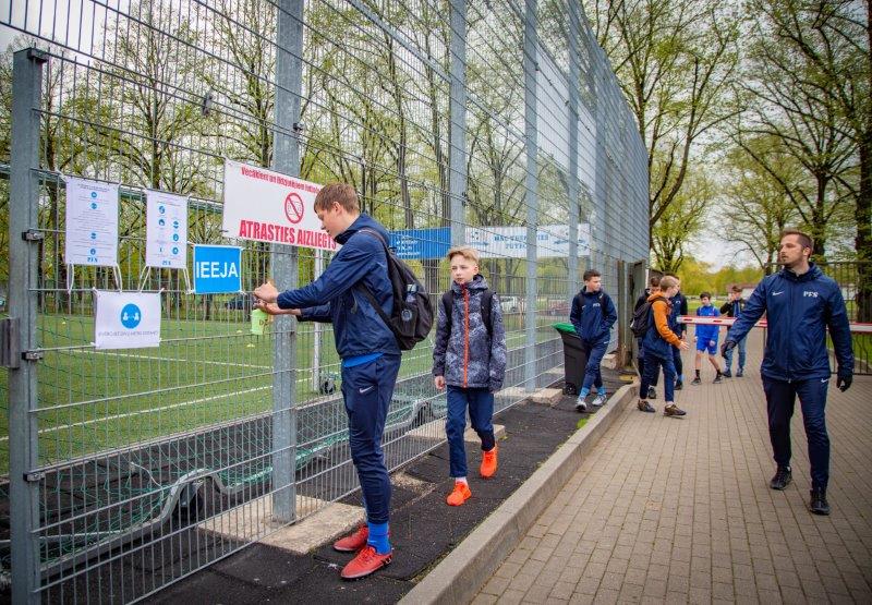 No 14. maija, pēc divu mēnešu pārtraukuma, vairākas Rīgas sporta skolas, tostarp arī Rīgas Futbola skola ir atsākusi klātienes nodarbības un treniņus bērniem un jauniešiem no septiņu gadu vecuma. Treniņi notiek, ievērojot fiziskās distancēšanās un epidemioloģiskās drošības pasākumus: