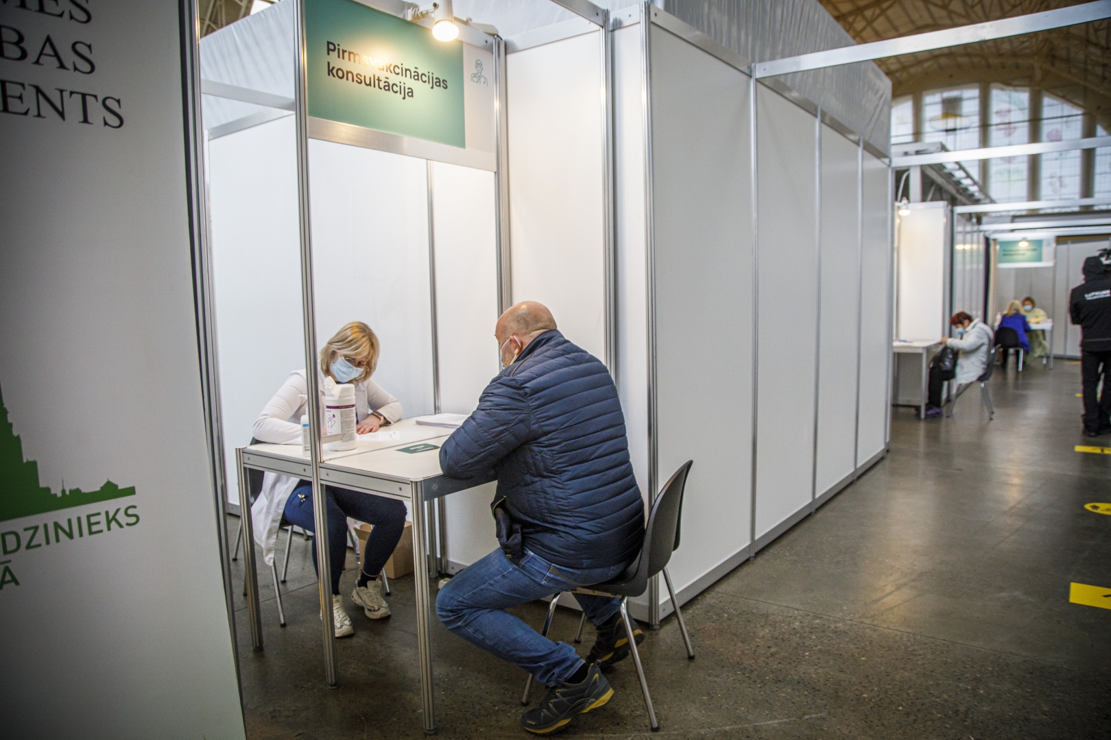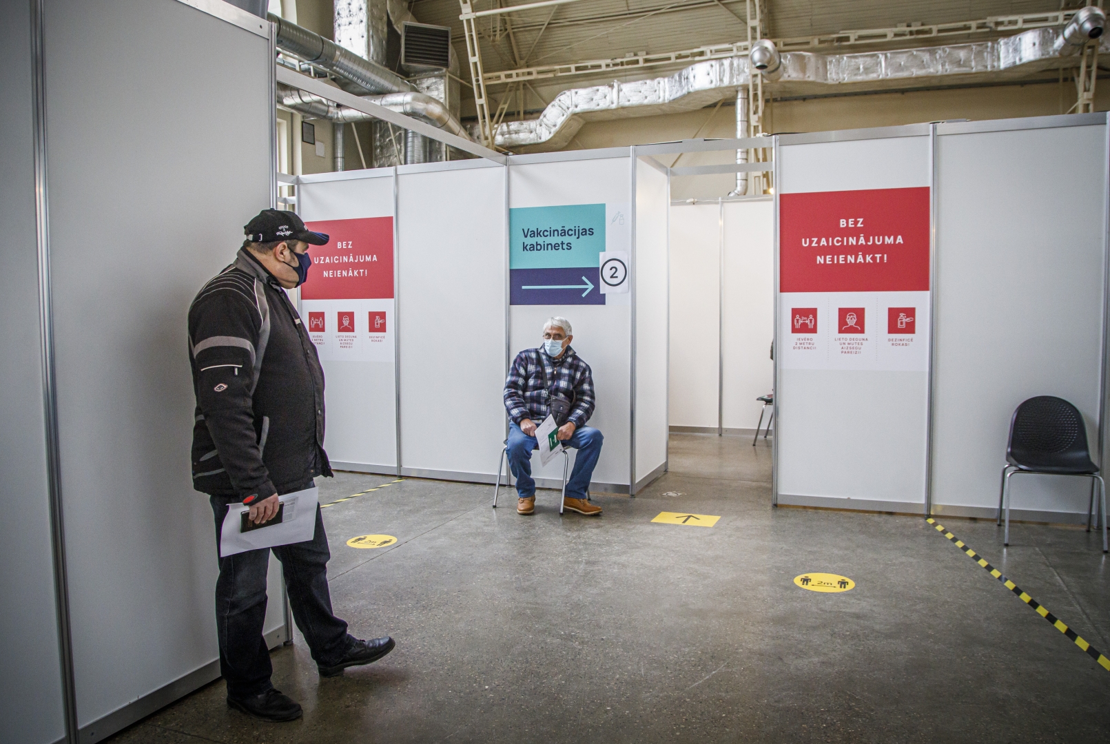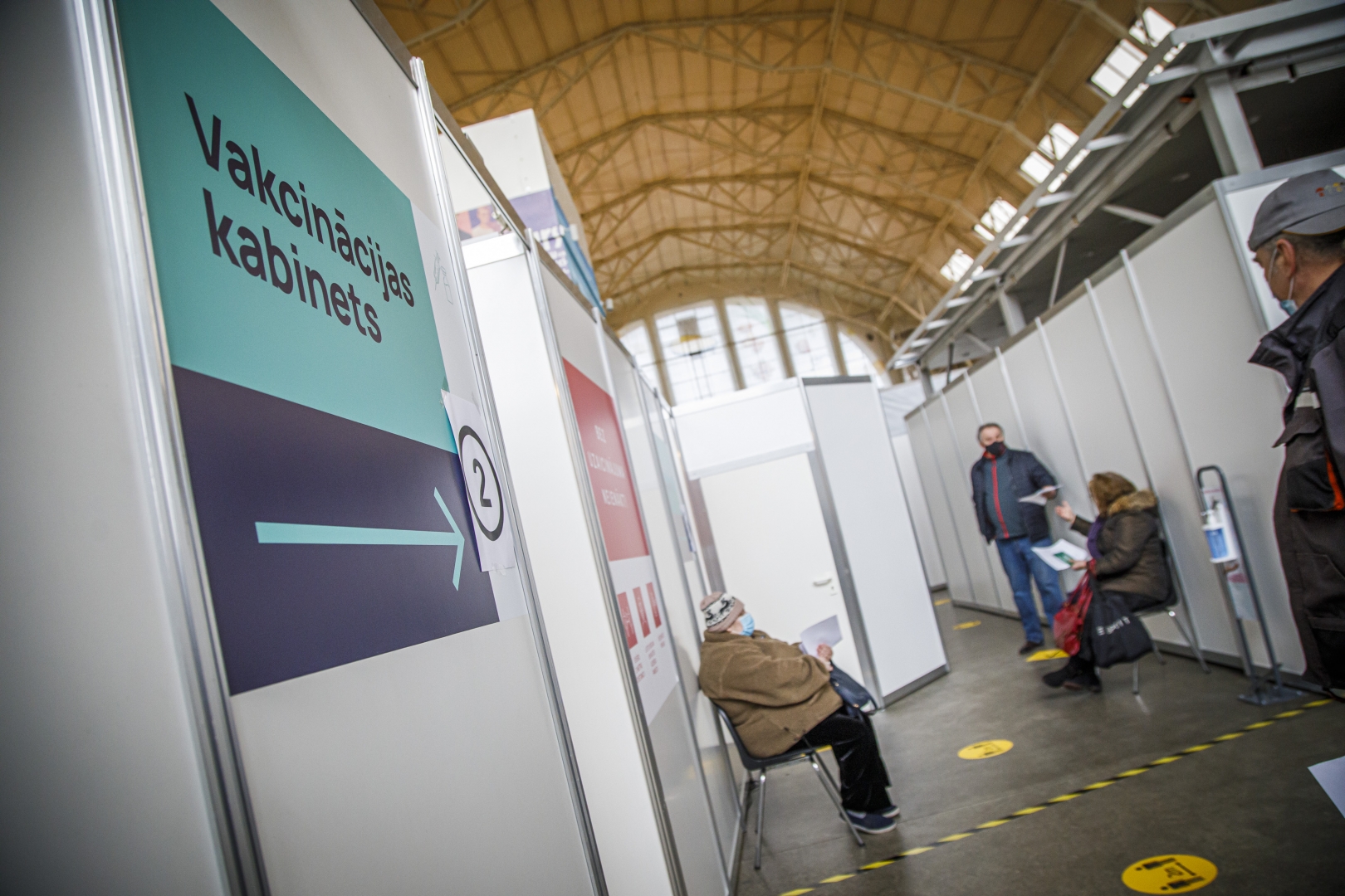 Rīgas pašvaldības izveidotajā masu vakcinācijas punktā Centrāltirgū sestdien sākās iedzīvotāju vakcinēšana