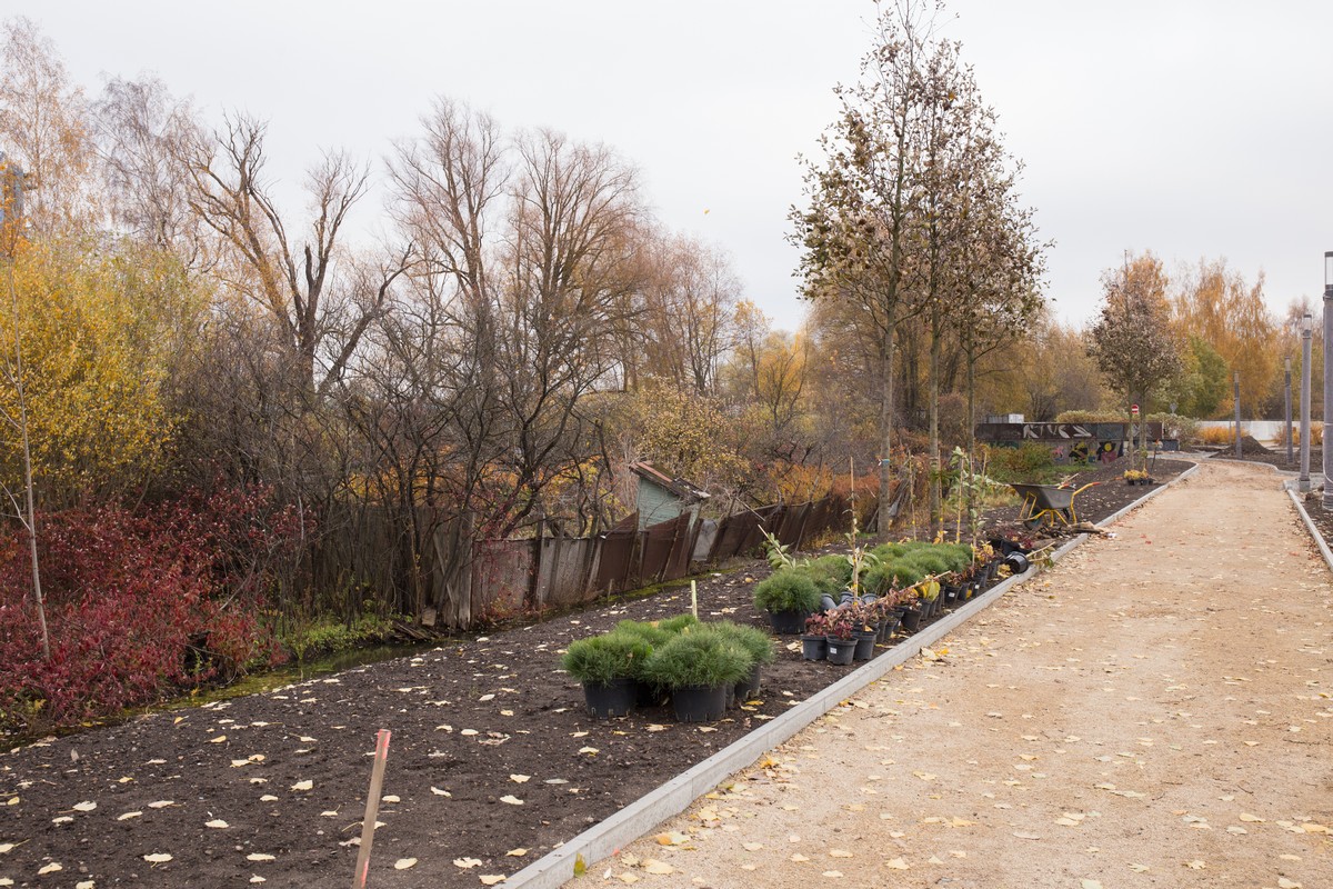 Izmantojot apstādījumu veidošanai labvēlīgos laikapstākļus, topošā parka teritorijā Skanstes apkaimē sākta koku stādīšana. Kopumā Skanstes dārzos plānots iestādīt ap 1000 koku, no kuriem 284 ir ar stumbra apkārtmēru 25-30 cm jeb dižstādi.
