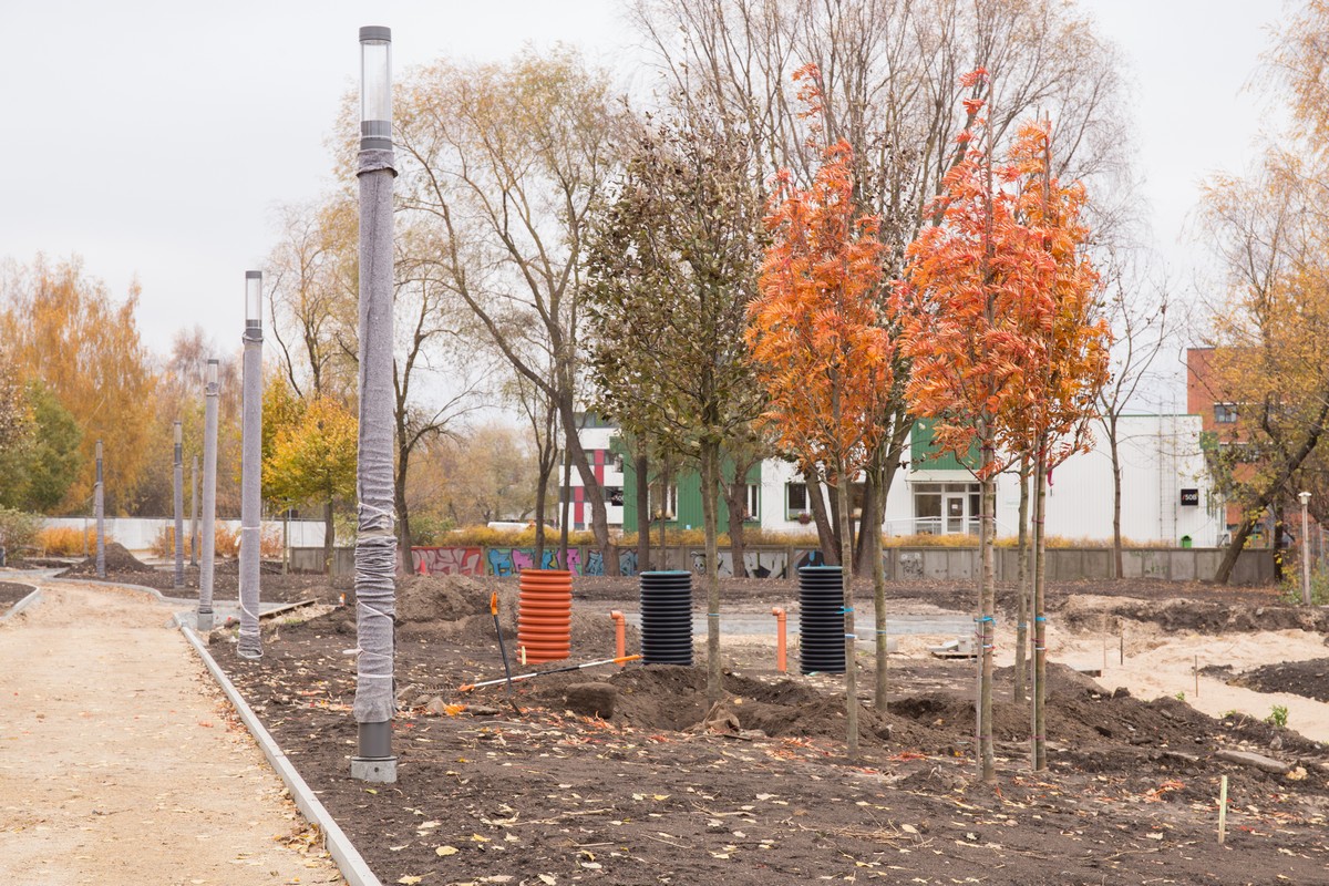 Topošā parka teritorijā Skanstē sākta koku stādīšana