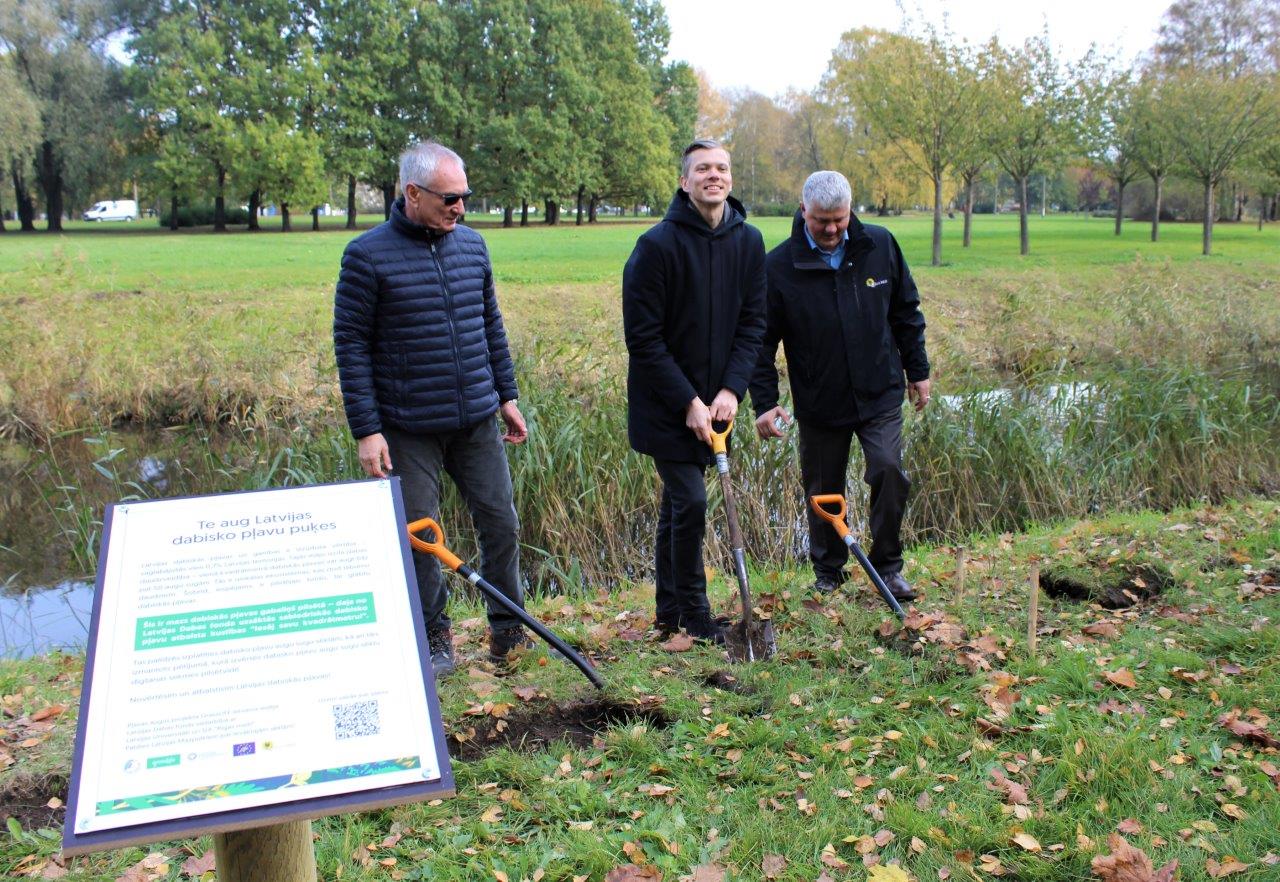 Uzvaras parkā iesēts pirmais kvadrātmetrs urbānās pļavas