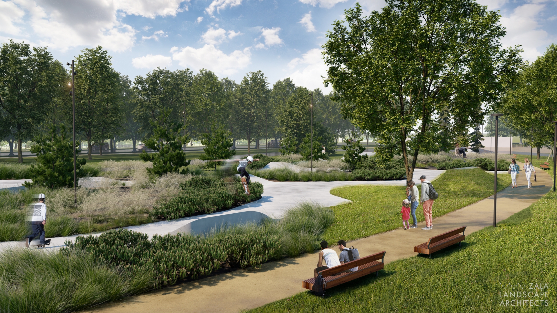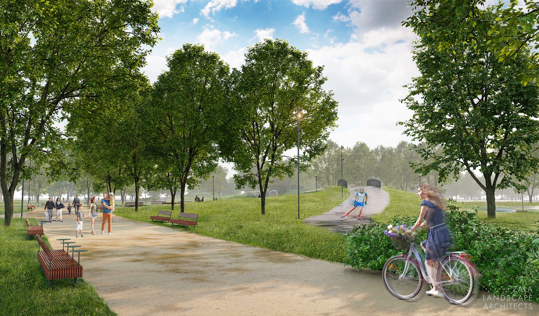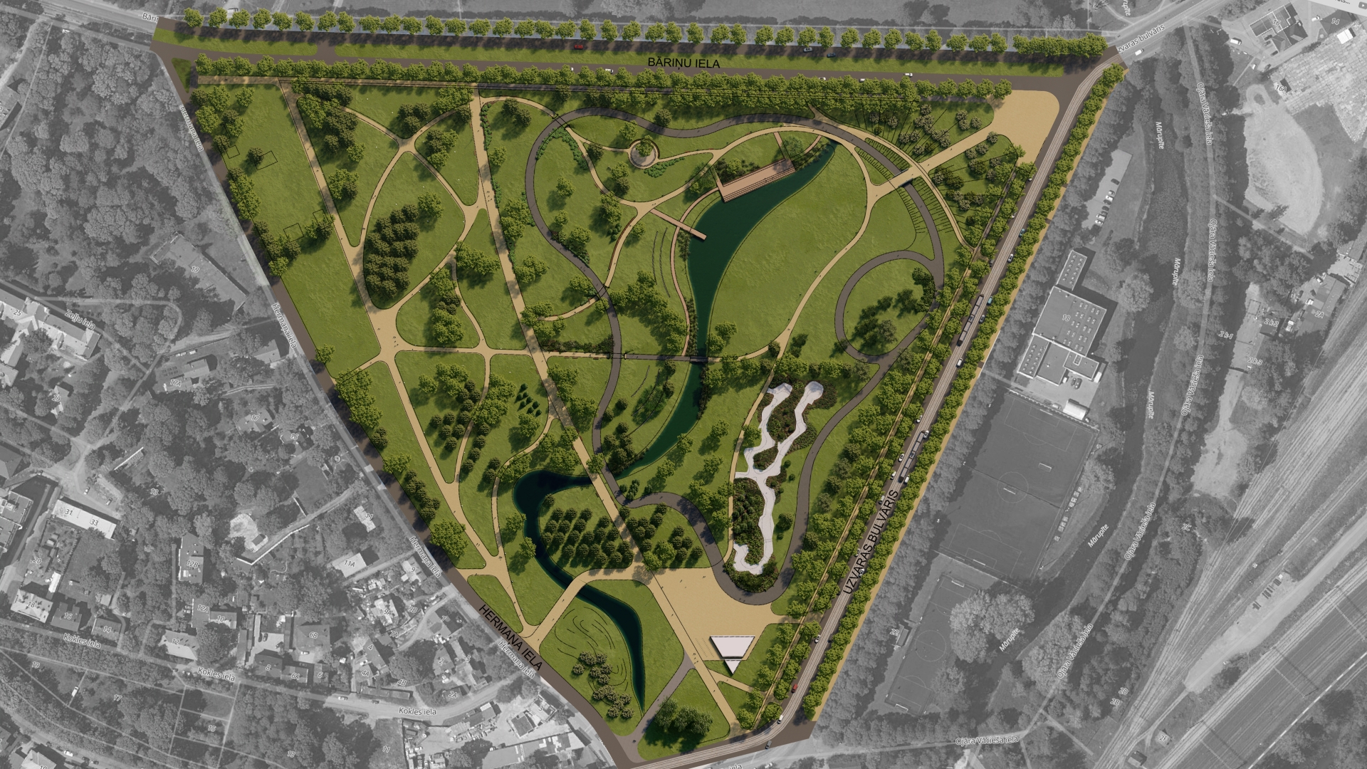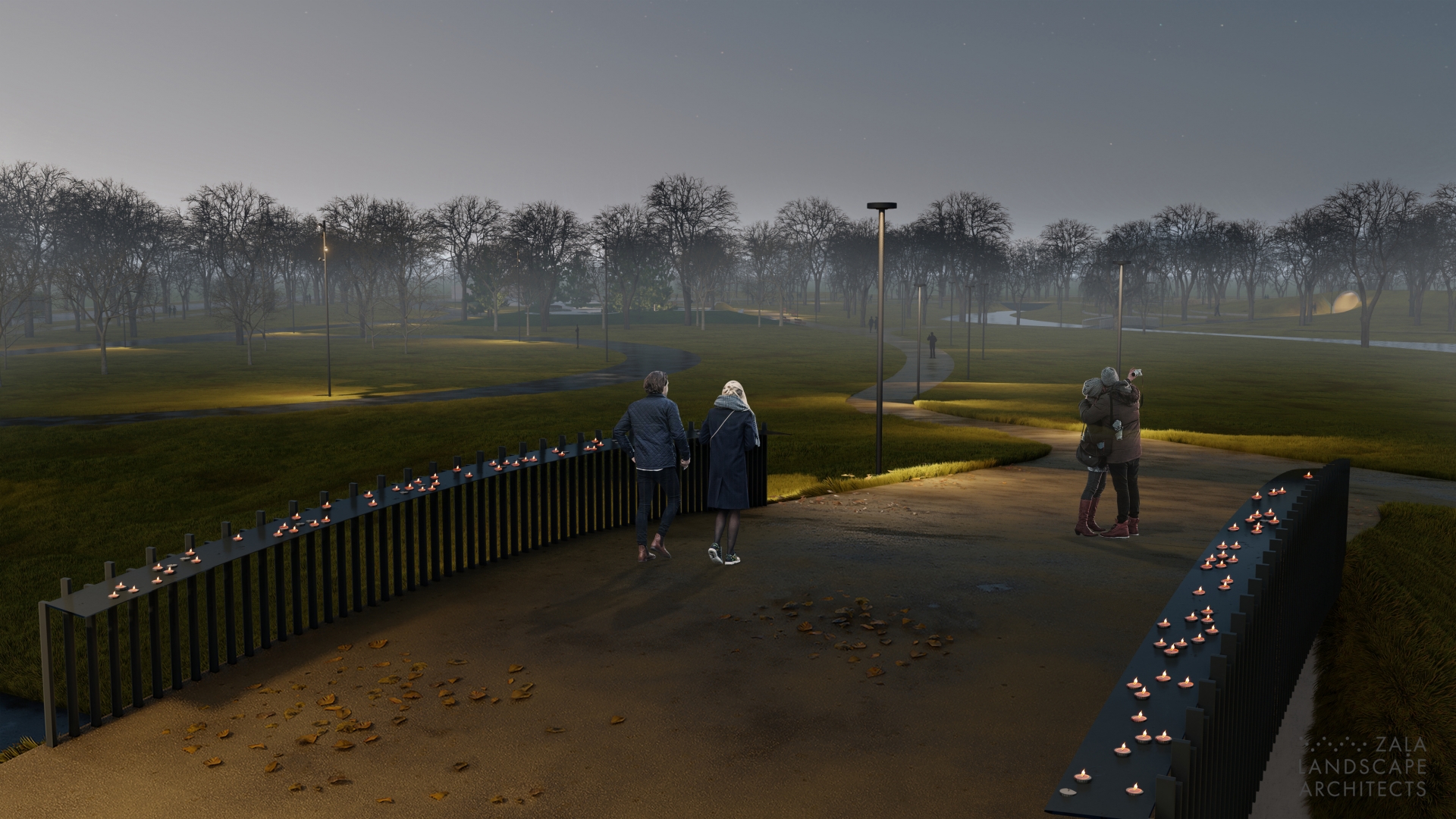 Ieeja Uzvaras parkā Lāčplēša diena Vizualizācijas: Zala Landscape Architects, Vizualizāciju darbnīca