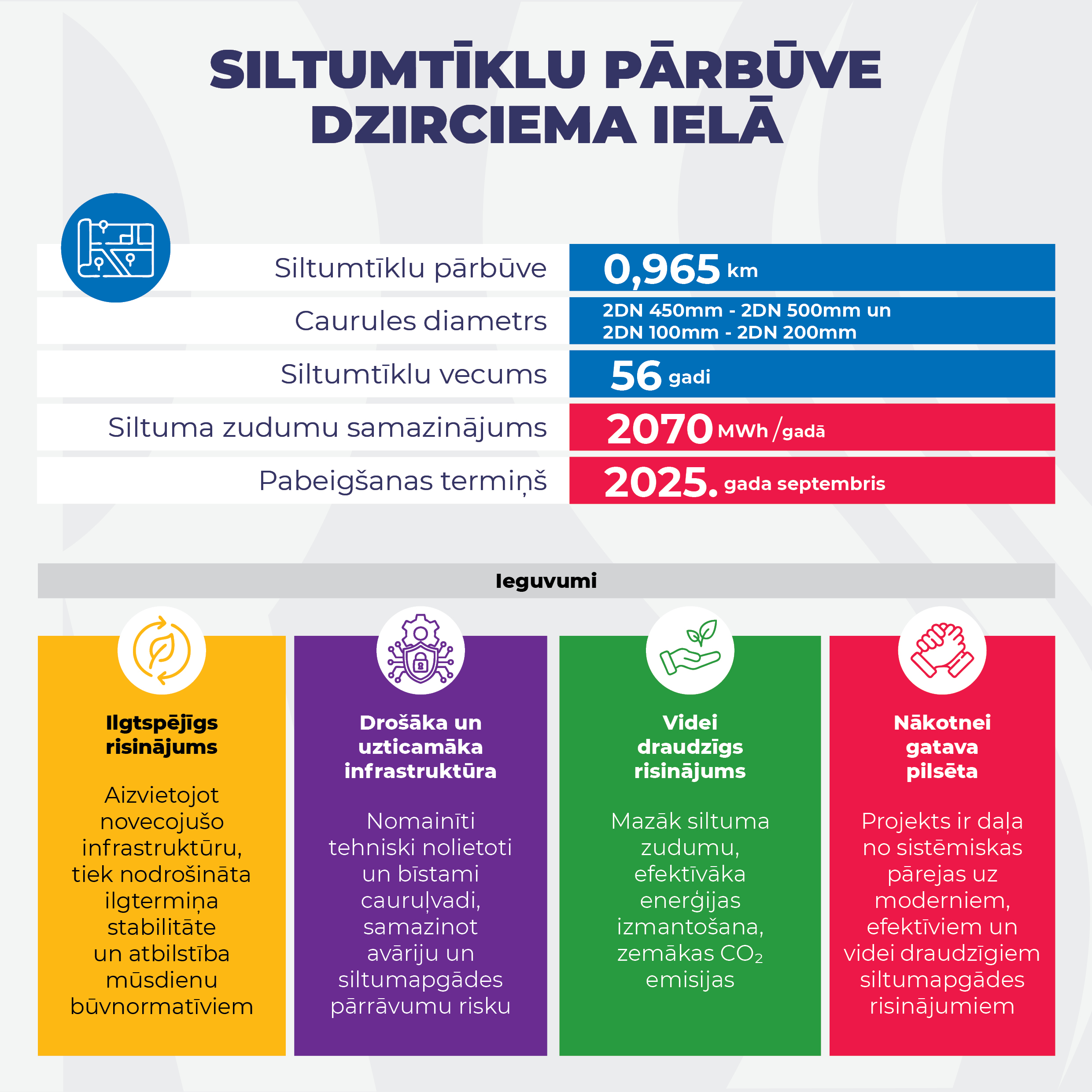 Dzelzavas ielā, kur nākotnē plānots izbūvēt Metrobusa līniju, tiek pārbūvēti siltumtīkli, kas nodrošina siltumenerģiju Purvciemam, Vecrīgai, Centrāltirgus rajonam un citiem Rīgas centra rajoniem. Novecojušā un bojātā cauruļvadu infrastruktūra tiek nomainīta uz rūpnieciski izolētām caurulēm, kas nodrošinās par 4700 MWh mazākus siltuma zudumus gadā. Pēc siltumtīklu pārbūves tiks atrisināta problēma arī ar ikgadēju ielas seguma iegruvumu esošo siltumtīklu aku zonā, kas ir saistīta ar pārlieku lielu slodzi un satiksmes intensitāti pie sabiedriskā transporta pieturas. Šis projekts ir daļa no Rīgas transporta sistēmas zaļināšanas reformas, kas paredz prioritāti sabiedriskajam un velotransportam, sekmējot transporta negatīvās ietekmes uz vidi samazinājumu.