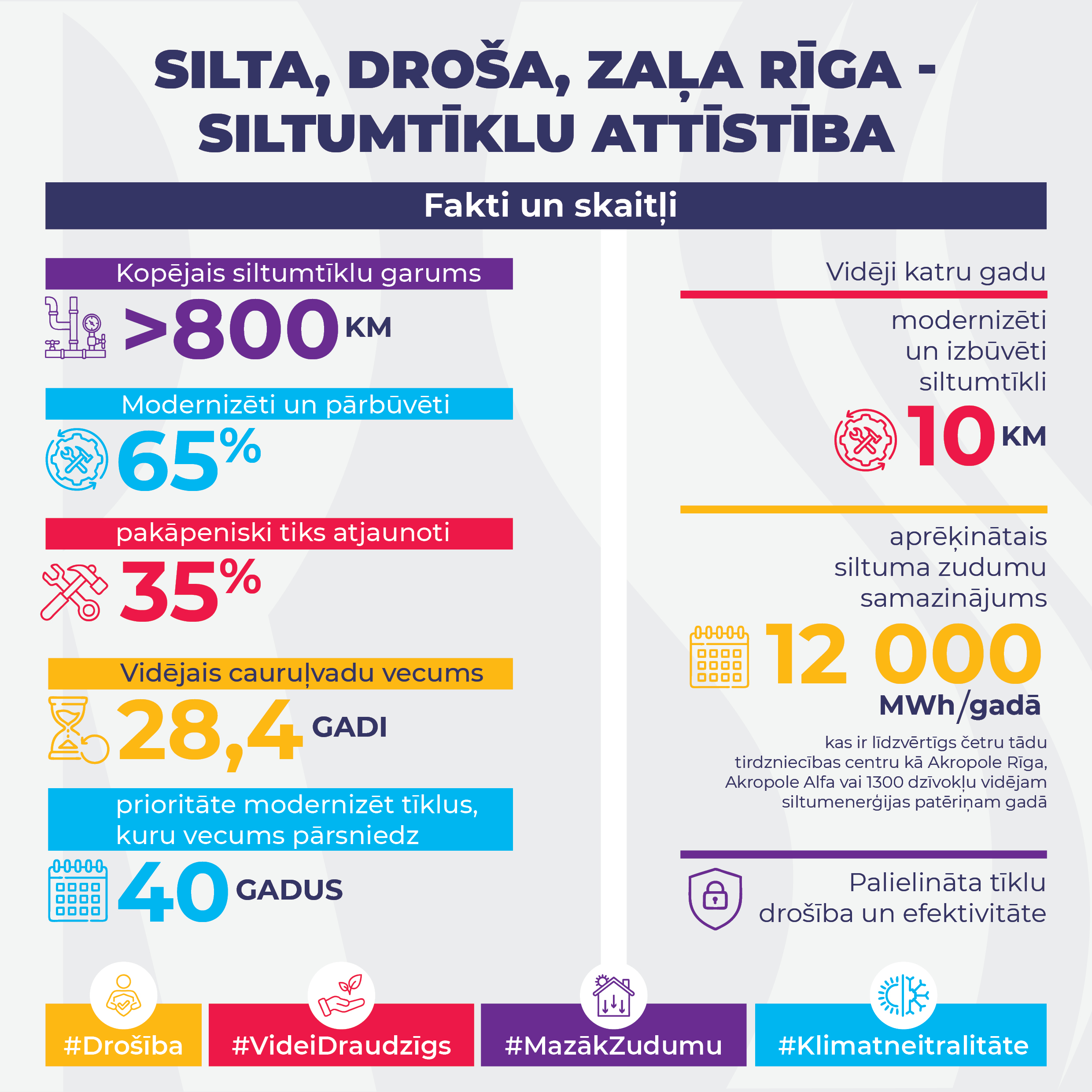 Jau šobrīd AS "Rīgas Siltums" ir atjaunojis 65% no kopējā siltumtīkla apjoma un pārējos 35% atjaunos pakāpeniski, prioritāri, modernizējot siltumtīklus, kuru vecums pārsniedz 40 gadu.