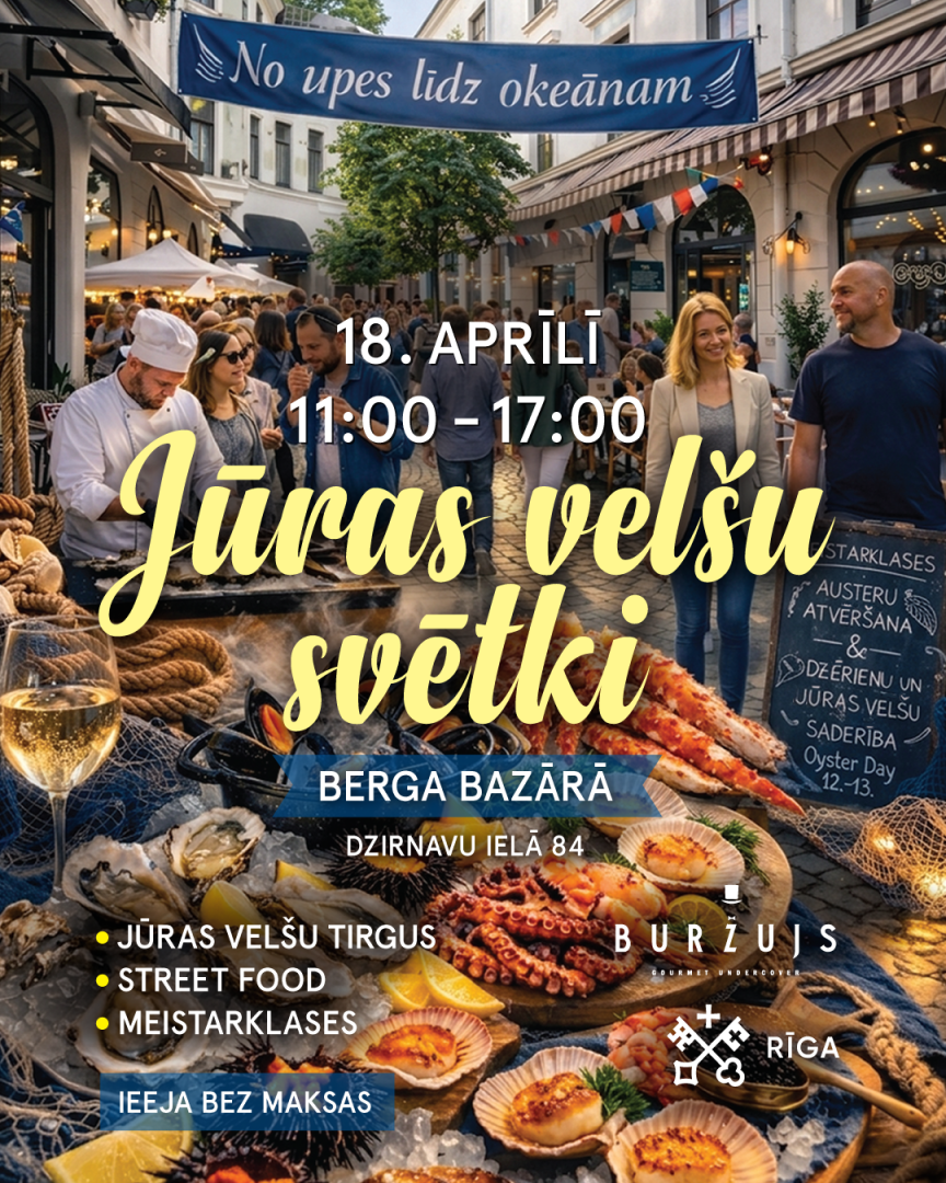 No plkst. 11.00 līdz 17.00 Berga bazārā norisināsies pirmie Jūras velšu svētki “No upes līdz okeānam” – gastronomisks notikums, kas pulcēs jūras velšu entuziastus, gardēžus un jomas ekspertus. Apmeklētājiem būs iespēja baudīt plašu jūras velšu klāstu, piedalīties meistarklasēs un izglītojošos semināros par zivju audzēšanu un kvalitāti Latvijas ūdeņos.