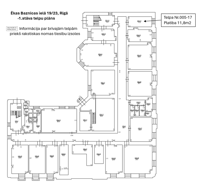 1. stāva telpu Nr. 005 -17, kas atrodas ēkā Baznīcas ielā 19/23, Rīgā,