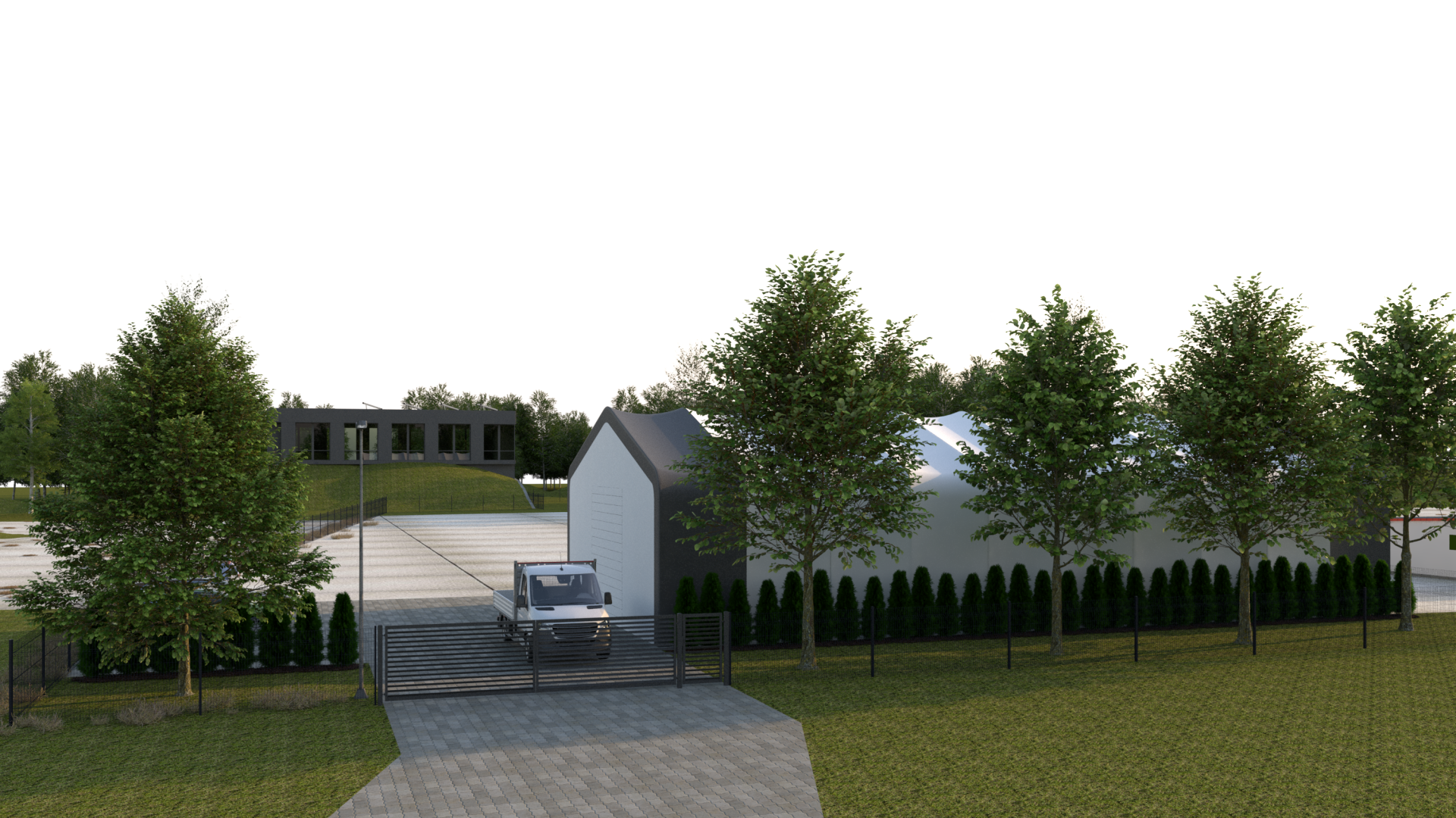 Projektējamā noliktavas ēkā paredzēts uzglabāt alumīnija logus un metāla durvis turpmākai transportēšanai uz veikaliem. Darbinieki objektā ieradīsies tikai produkcijas iekraušanas un izkraušanas laikā. 74% esošās teritorijas ir klāta ar dzelzsbetona plātnēm 200mm biezumā. Iebraukšana teritorijā ir paredzēta no Vējstūru ielas. Pašlaik piebraukšana objektam notiek pa grants ceļu, bet plānots Vējstūru ielu noasfaltēt. Pie iebrauktuves teritorijā paredzēts izvietot divas autostāvvietas, vietu diviem velosipēdiem un vietu atkritumu konteineriem. Gar ielu paredzēts veidot koku stādījumus.